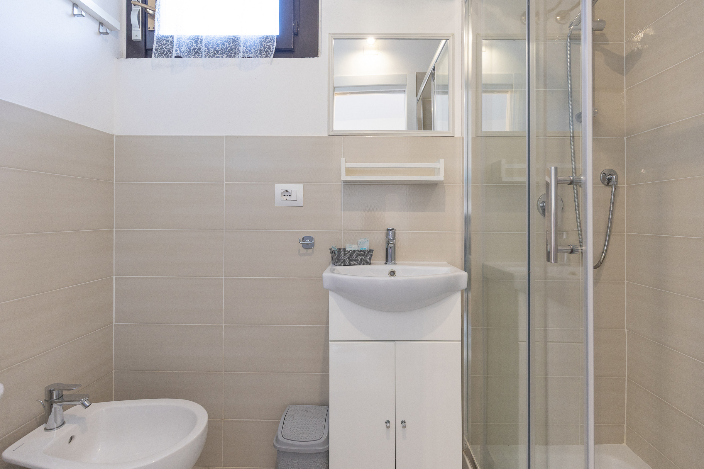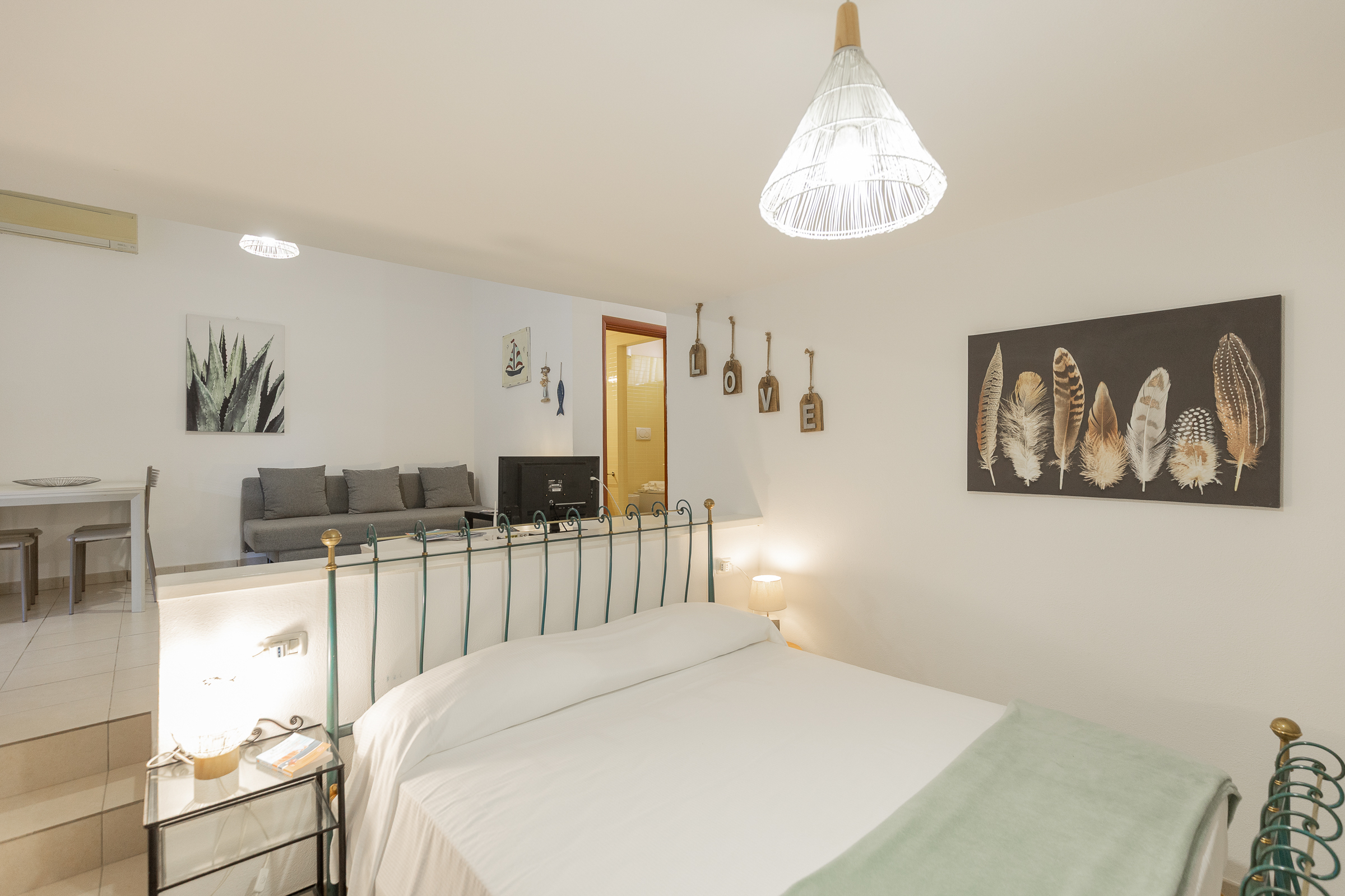 APARTMENT No. 2 is located on the first floor and has a private garden on the ground floor. It consists of a single open space with a double bed, kitchenette and bathroom.