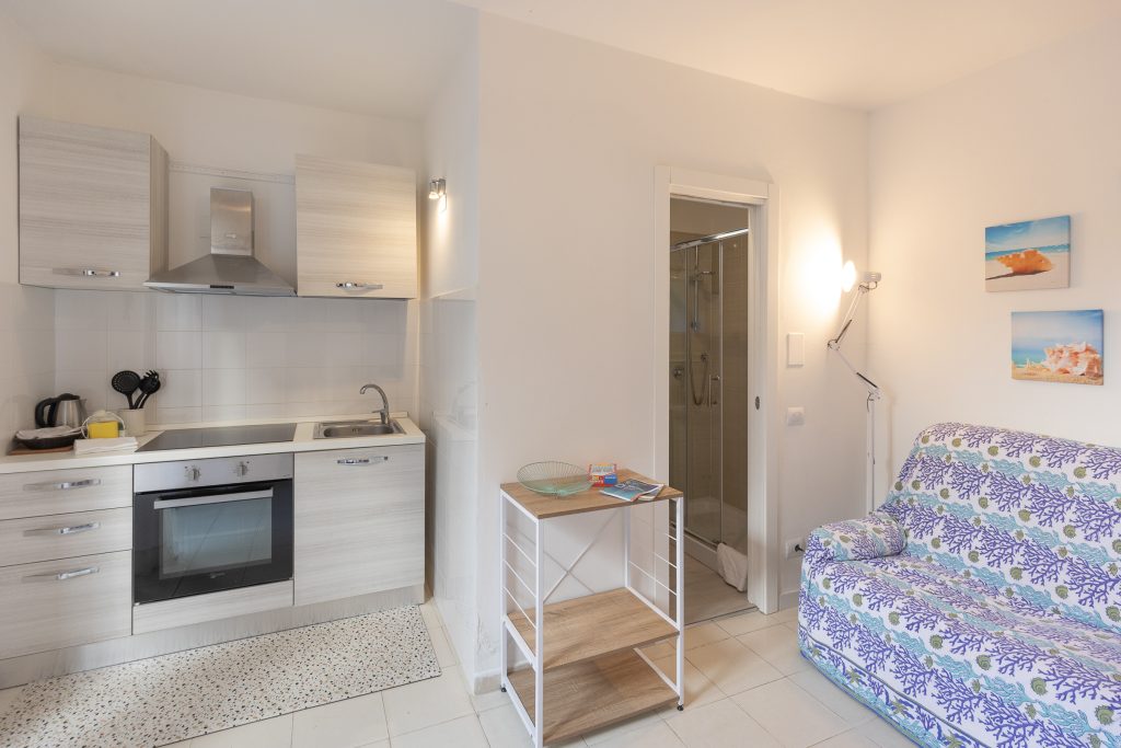 APARTMENT No. 10 is located on the ground floor with an exclusive garden. It consists of an open space with a double bed, kitchenette and bathroom.