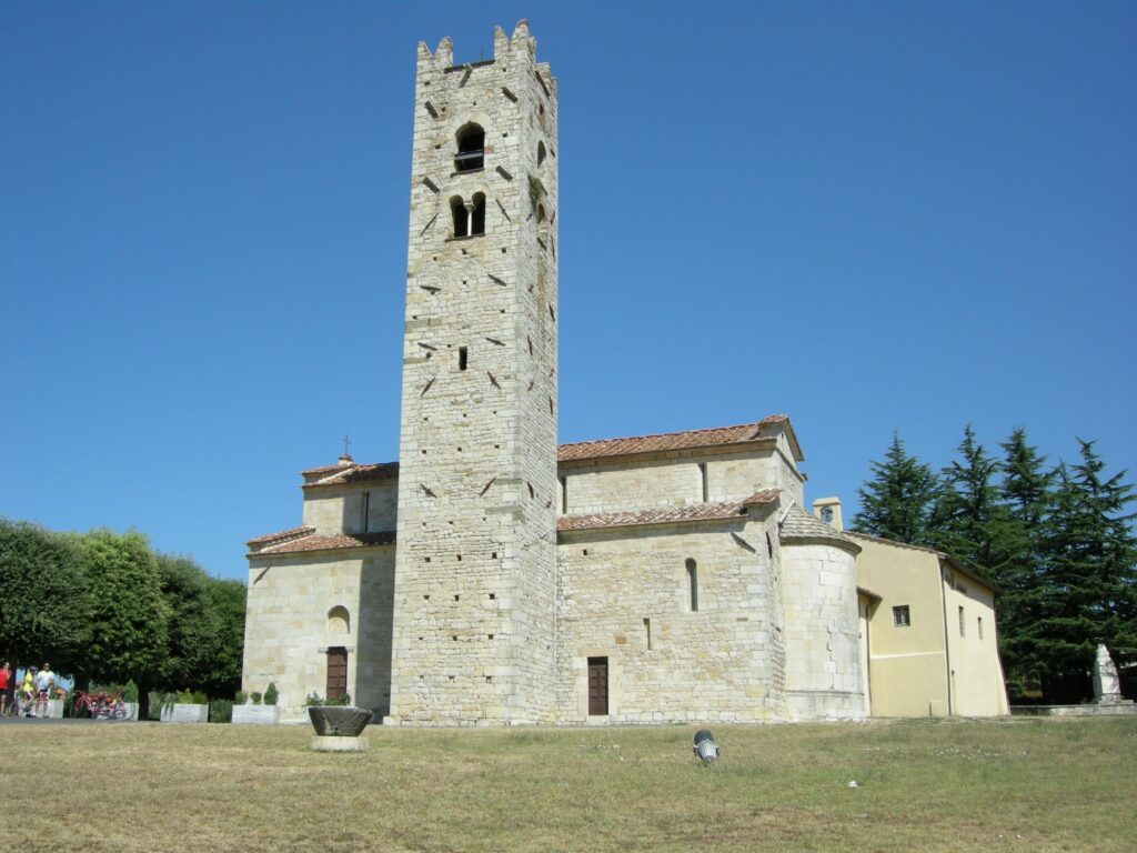 The next stop is the Pieve dei Santi Giovanni e Felicita in Valdicastello, a small hamlet of Pietrasanta known for being the birthplace of Giosuè Carducci (the first Italian to win the Nobel Prize for literature). Surrounded by the greenery of an olive grove, it is one of the oldest parish churches in Versilia. It was first mentioned in the 9th century but the present structure dates back to the 12th century. A large number of sculptures depicting human and animal figures can be seen from the period. Besides its position, it is striking for the contrast between the whiteness of the façade and the red brickwork of the single-light windows opening onto the bell tower. Inside, one can admire valuable late 14th-century frescoes and an interesting 15th-century tabernacle.