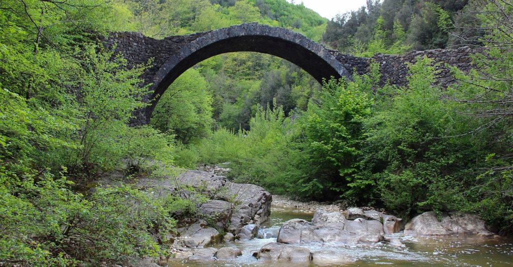 Nestled in the beautiful Dark Valley in Lunigiana, the Ponte di Groppodalosio is perhaps one of the least known but most fascinating bridges in the entire region. It crosses the river Magra, connecting Groppodalosio to Casalina, and consists of a single, elegant arch 16 metres long. On the Groppodalosio side, it is surrounded by terraces of olive trees and vines, while on the bank towards Casalina by chestnut groves and dryers. As we see it today, it is the result of a reconstruction that took place in the second half of the 16th century. However, traces of much older masonry are still visible under the archway, probably dating back to the year 1000. The bridge can be reached on foot from the state road to Casalina, following the Via Francigena signpost in the direction of Groppodalosio.